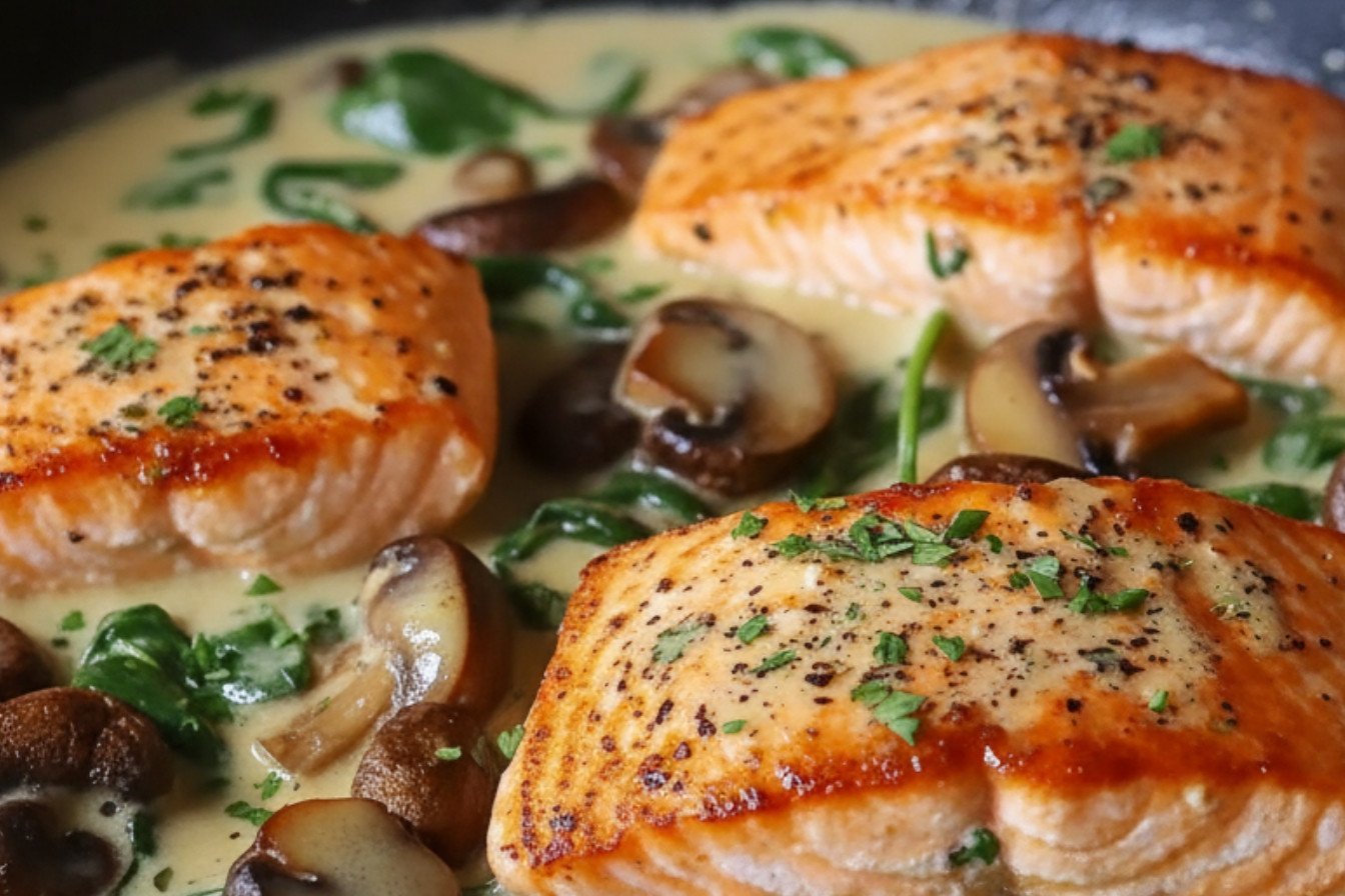 Creamy Garlic Butter Salmon with Mushrooms Spinach